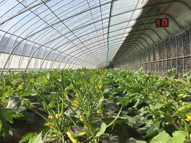 1. 該溫室由全鋼骨架、蓄熱水箱、雙膜單被等裝配而成,結構輕便,采光角度科學合理,實現了通風和卷簾的自動控制。具有采光和保溫性能好、蓄放熱量大、承載力強等特點。